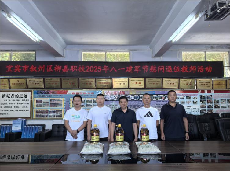 2025年7月31日上午,在中国人民解放军建军98周年即将到来之际,宜宾市叙州区柳嘉职业技术学校开展了“八一”建军节慰问活动,向学校在职及退休的退伍军人教职工致以节日的问候与崇高的敬意。学校党总支副书记、校长宋强,党总支委员、副校长唐尚超出席活动。