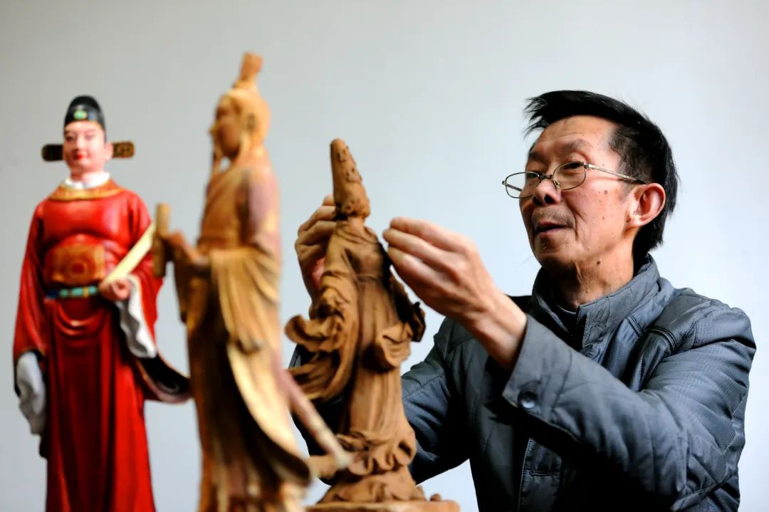 徐氏泥彩塑,源于遂宁市大英县,国家级非物质文化遗产之一。其作品用黄泥、粘土,经过扎架、砌粗坯、上细泥、刮灰打磨、上彩贴金等多道工序完成。人物造型栩栩如生,形象气韵生动、超凡脱俗,透出古风雅韵。