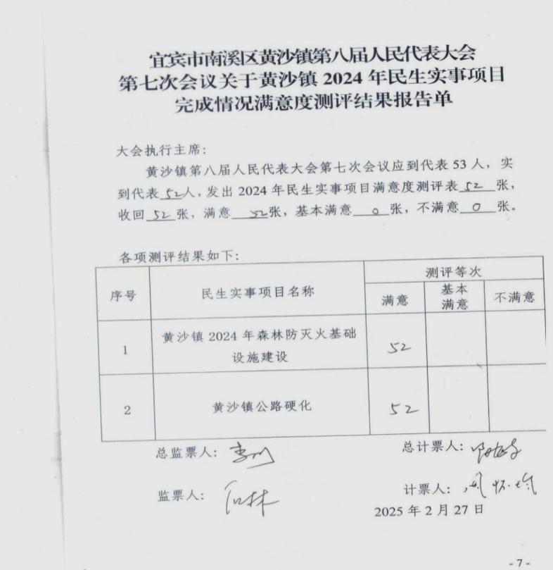 在民生实事项目完成后,南溪区黄沙镇人大主席团还组织代表对项目进行满意度测评。测评结果作为评价政府工作的重要依据,对不满意的项目要求政府限期整改,确保民生实事项目真正惠及于民。