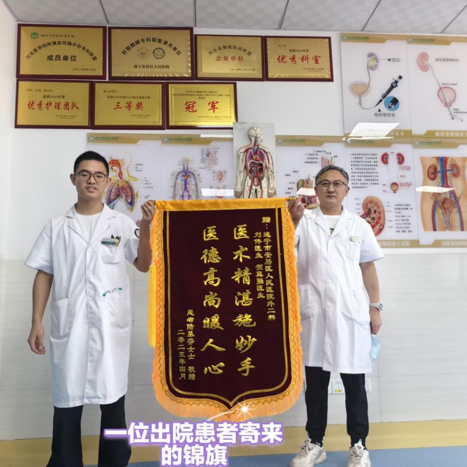 在刘伟、贺真强医师等医护团队的积极治疗和耐心护理下,陆女士术后恢复良好,顺利返回成都上班。事后,她特意给科室寄来了感谢锦旗。