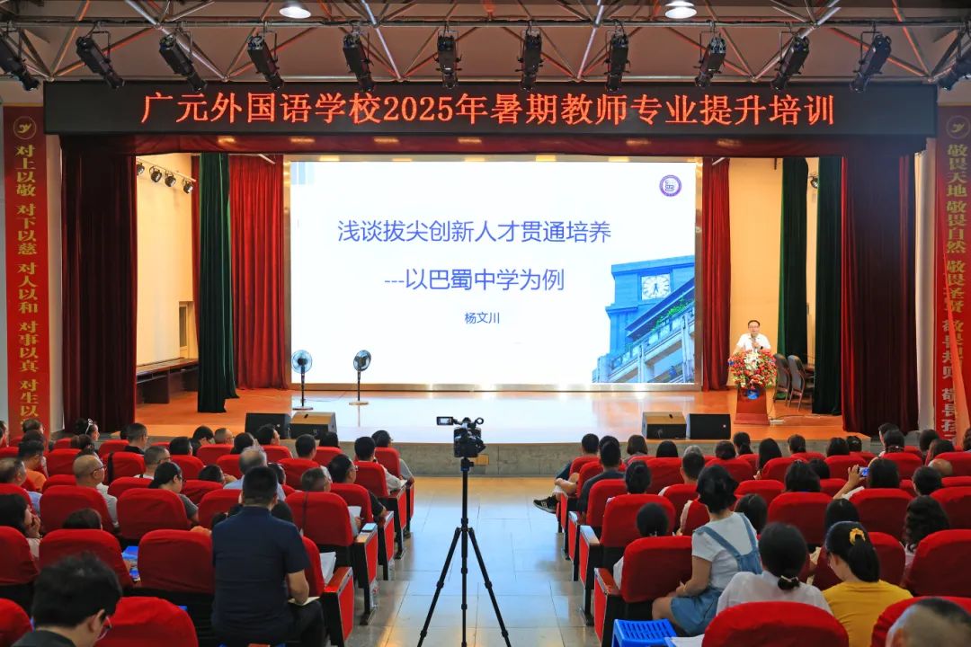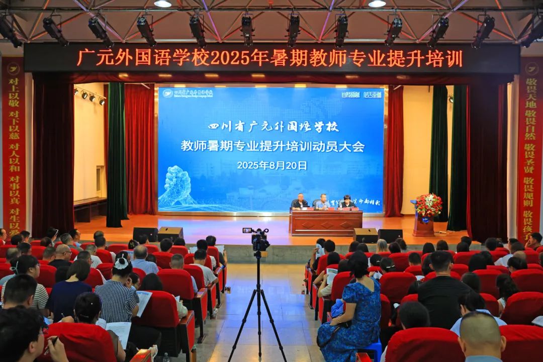 为进一步提升教师队伍专业素养,8月20日至21日,广元外国语学校举行以“培训赋能促发展,笃行不怠向未来”为主题的2025年暑期教师培训活动。学校校长陈大向出席会议,各分校全体专任教师参与培训。本次活动还特邀广元民盟烛光初级中学、昭化区昭化镇初级中学、昭化区实验小学、昭化区元坝镇第一小学、苍溪县元坝镇初级中学、青川一中等多所兄弟学校的教师代表共同参与,共研成长、共话教育。