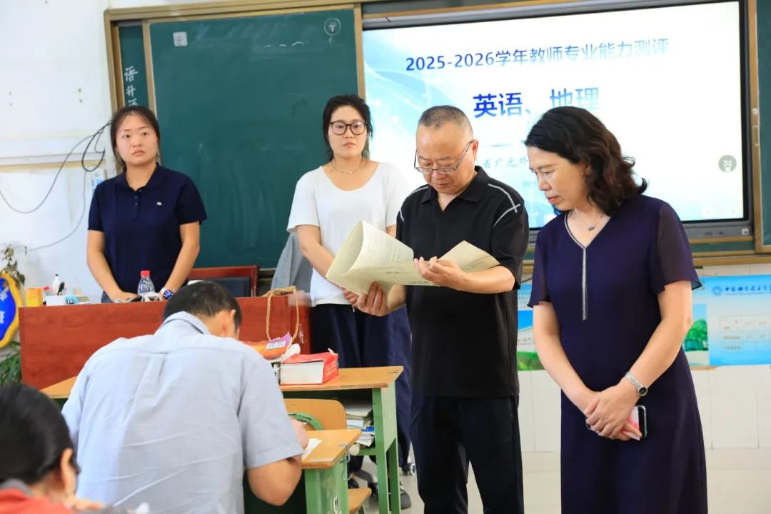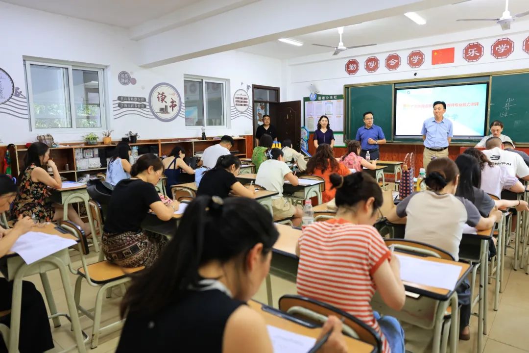 为检验和巩固暑期培训成效,8月21日下午,学校组织开展了2025年暑期教师专业能力测试。本次测试紧扣学科课程标准,采取答题、说题与命题相结合的多元形式,全面考查教师对课标的理解与教学应用能力。学校高度重视此次测试,组织严密、考风严肃,旨在通过“以考促学”的方式,推动教师深入研读新课标、践行新理念,切实将课程标准转化为课堂教学的有效指导。学校党委书记官英,副校长陈玉培、陈子卫,研究中心主任曾义等领导亲临考场巡视指导。