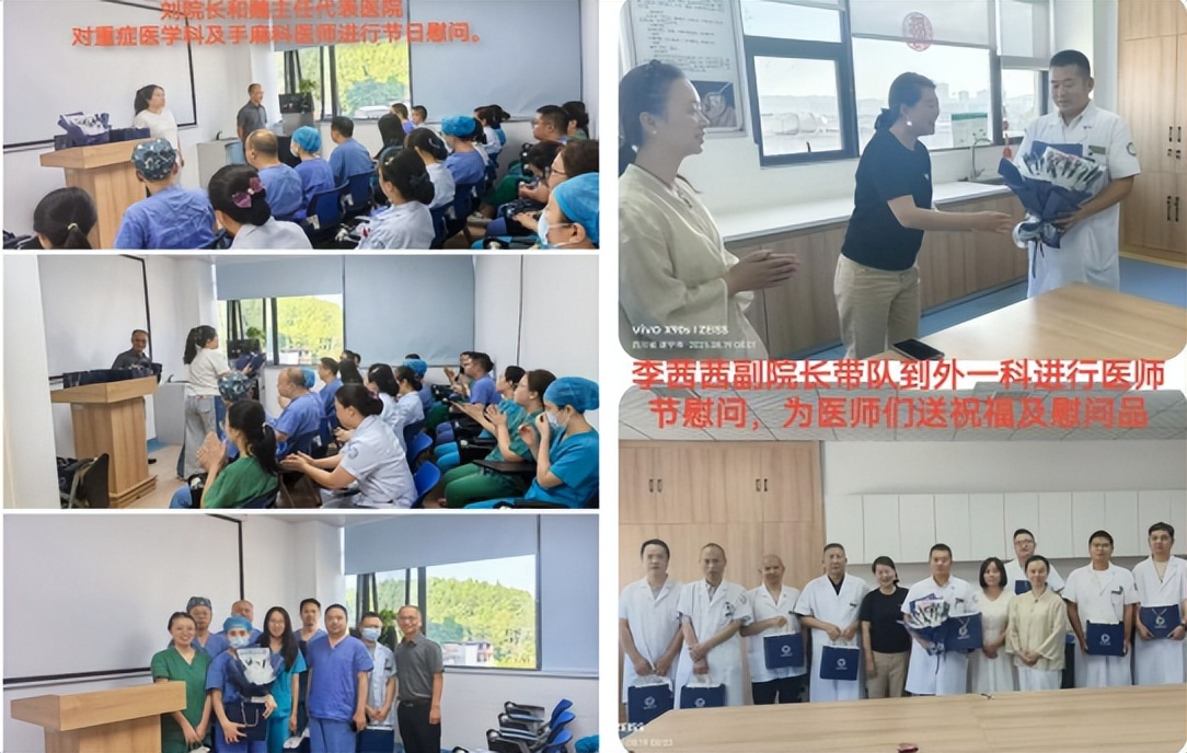 8月19日医师节当天上午,温暖依旧在延续。在家院领导带领相关科室负责人组成慰问组,深入临床科室、医技部门、急诊抢救室等一线岗位,向坚守在工作岗位上的医师们送上节日祝福。