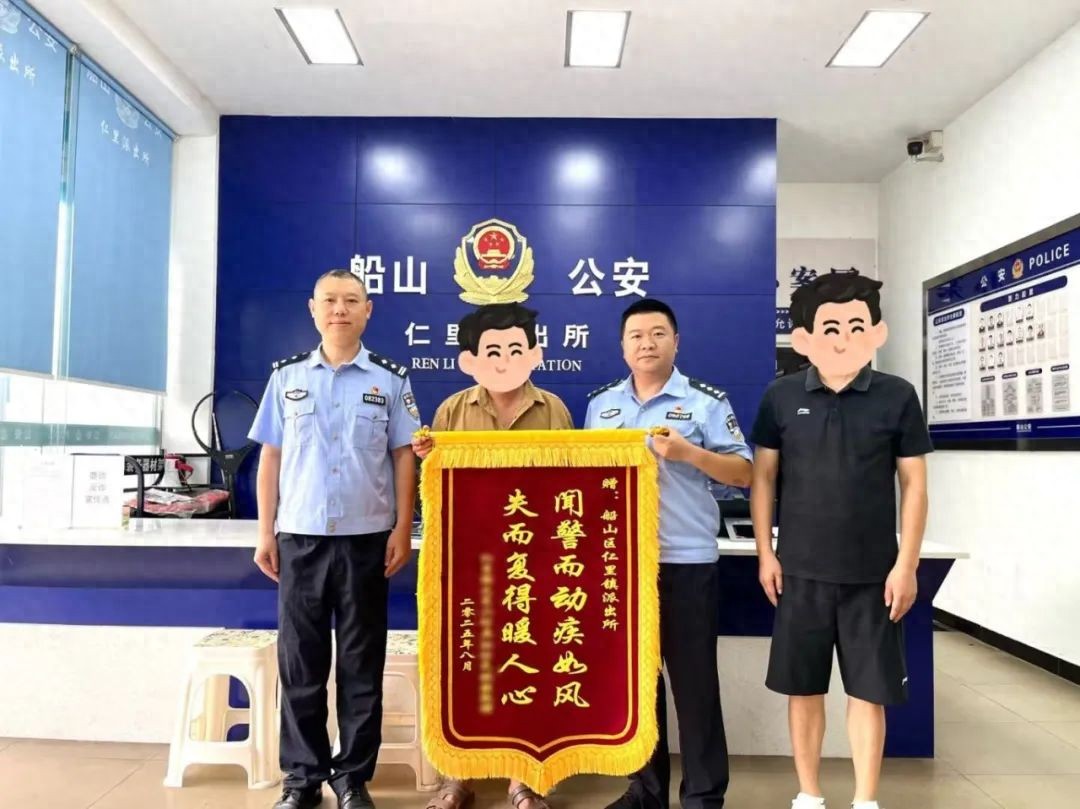 “闻警而动疾如风 失而复得暖人心”的锦旗
