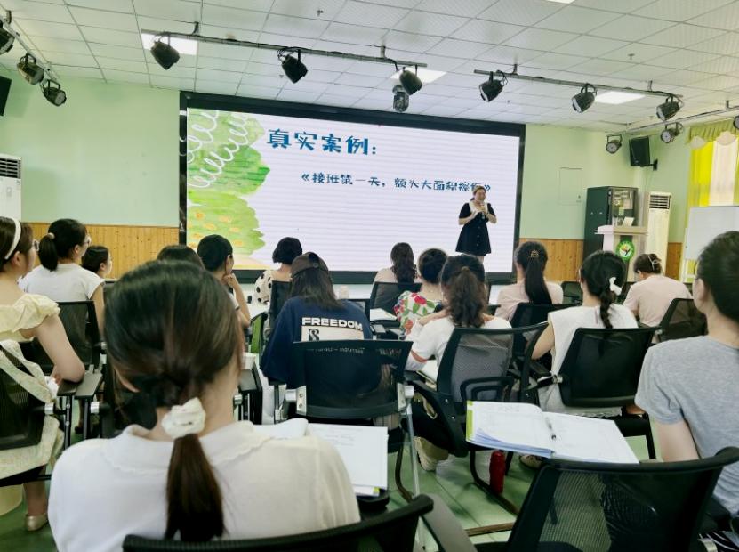 培训中,县级骨干教师陈莉作《有效家园共育 共促幼儿成长》专题讲座。她结合幼儿教育实践案例,从家长工作的重要性、家长工作的目的是什么?如何开“家长会”才有效、家园工作要点等方面展开分享,为教师搭建家园协同育人的实践路径,助力形成教育合力,促进幼儿全面健康成长。
