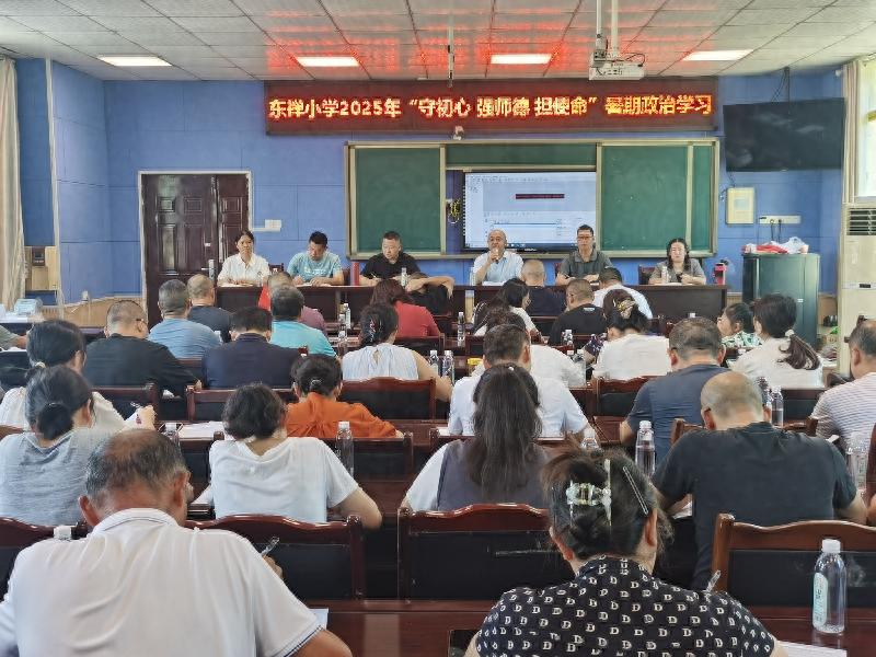 2025年8月27日,遂宁市安居区东禅镇中心小学组织全体教职工在会议室开展以“守初心 强师德 担使命”为主题的政治学习活动。