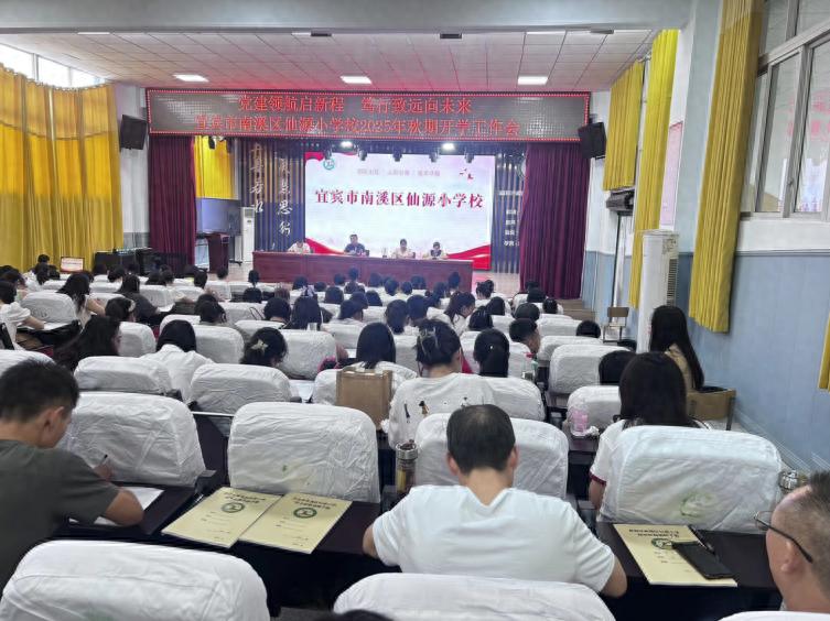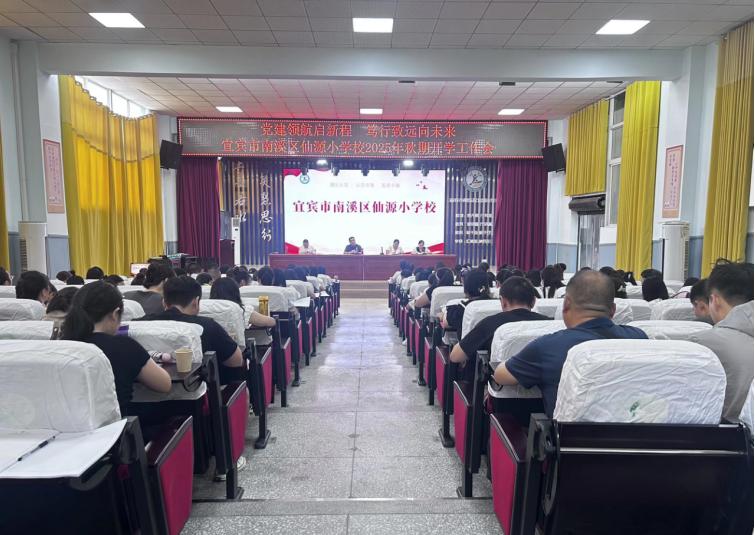 8月27日,宜宾市南溪区仙源小学校在灵慧楼5楼召开了2025年秋期开学工作会,会议由学校校长杨召云主持,全校教职员工齐聚一堂,共同为新学期的工作谋篇布局、蓄力启航。