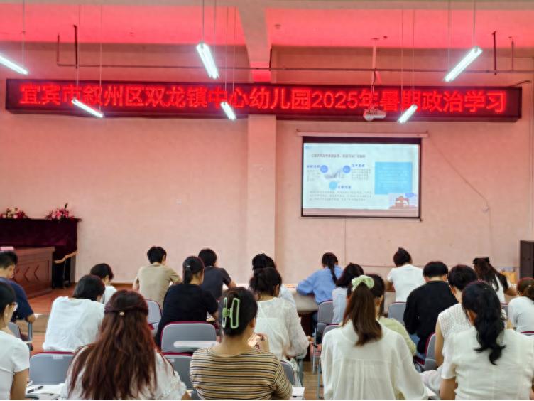 为提升全镇幼儿教师思想政治素质和业务水平,规范教师职业道德行为,建设一支德高艺精的幼儿教师队伍,2025年8月25日,宜宾市叙州区双龙镇幼儿教师开展了为期5天的暑假政治学习,全镇幼儿教师以积极的学习态度开启了探知与收获的旅程。