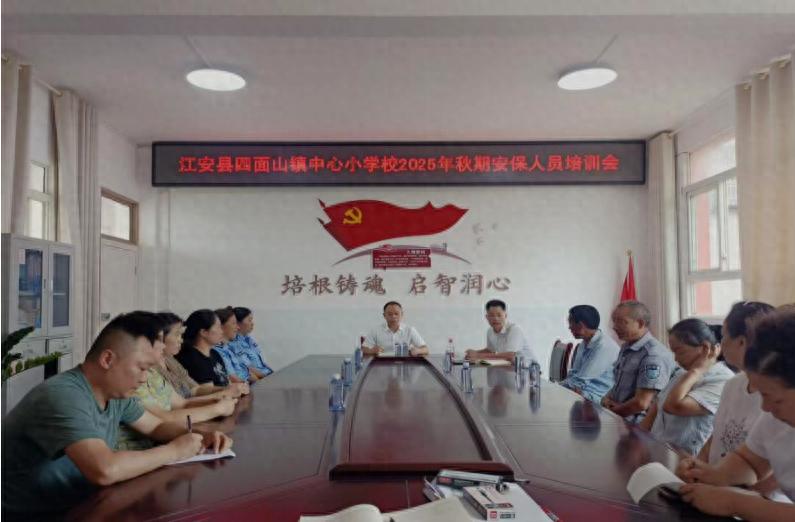 为进一步加强校园安全管理,切实提升校园安全防范水平,增强安保人员的责任意识、专业技能和应急处置能力,确保全体师生的人身安全和校园的和谐稳定,2025年8月29日,江安县四面山镇中心小学校组织全体安保人员召开了专项技能培训会。此次培训由该校党支部书记、校长何加江主持,该校分管安全的副校长贺士春牵头组织全体安保人员积极参与,全面覆盖校园安全各个关键领域。