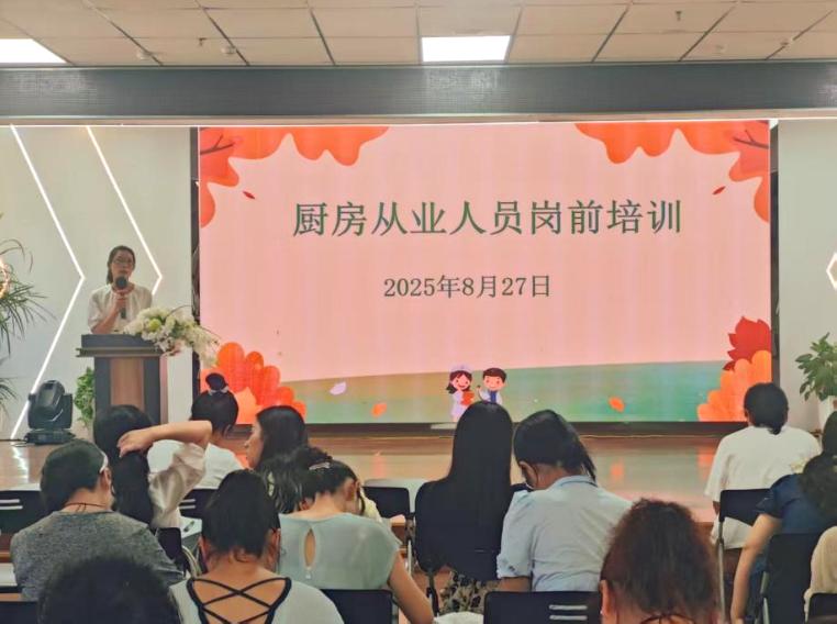 厨房人员培训:开展了食品安全操作规范专题培训,重点强调了食材采购验收、储存管理、加工制作、留样检测、餐具消毒、个人卫生等环节的规范要求,确保全体厨房人员熟知流程、规范操作,为幼儿提供营养、安全、健康的膳食。