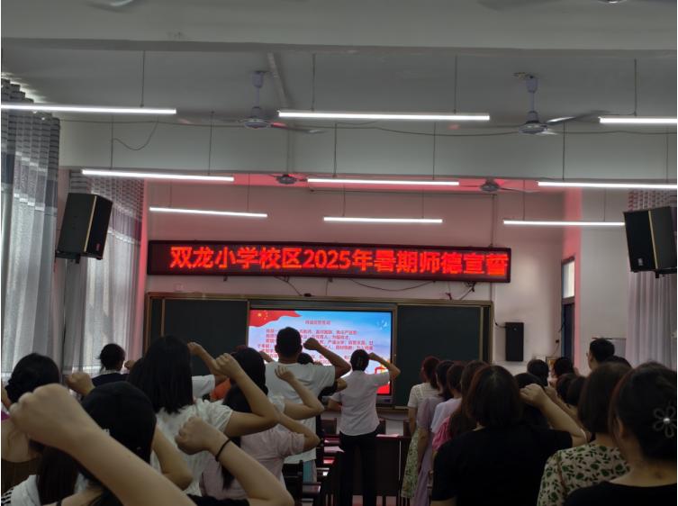 接着,为深化师德师风建设,叙州区双龙学校双龙小学校区组织开展了师德宣誓活动。活动现场,教师们庄严举起右手,郑重宣誓:“我是一名光荣的人民教师…… 为教育发展、国家繁荣和民族振兴努力奋斗!” 铮铮誓言,彰显着教师们坚守教育初心、践行师德规范的坚定决心,也为培育新时代优秀学子筑牢了思想根基。