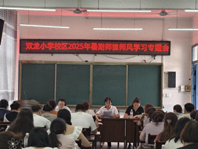 为进一步加强师德师风建设,提升教师职业道德素养与纪律意识, 2025年8月28日,宜宾市叙州区双龙学校双龙小学校区召开了暑期师德师风学习专题会。会议由该校区校长康兴会主讲,围绕《新时代中小学教师职业行为十项准则》,明确教师职业行为规范;解读《中国共产党纪律处分条例》,强化教师纪律观念;宣讲《关于加强和改进新时代师德师风建设的意见》等,为师德师风建设指明方向。此次学习,为教师们筑牢思想根基,推动学校教育工作向更高质量迈进。