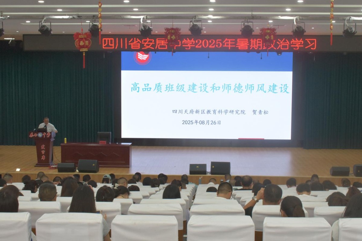 8月27日至29日,学校组织全体教职员工开展政治学习。会议中,各部门负责人带领教师深入学习了《宪法》、《民法典》、《中国共产党纪律处分条例》、《中华人民共和国教师法》、《事业单位人事管理条例》、《教师资格条例实施办法》等法律法规及章程制度。同期,学校邀请了四川天府新区教育科学研究院贺青松、沙坪坝区教师进修学院王显锋分别作《高质量班级建设和师德师风建设》、《实然与应然:学科育德的审视与可能》专题讲座,进一步强化师德素养与教育实践能力。