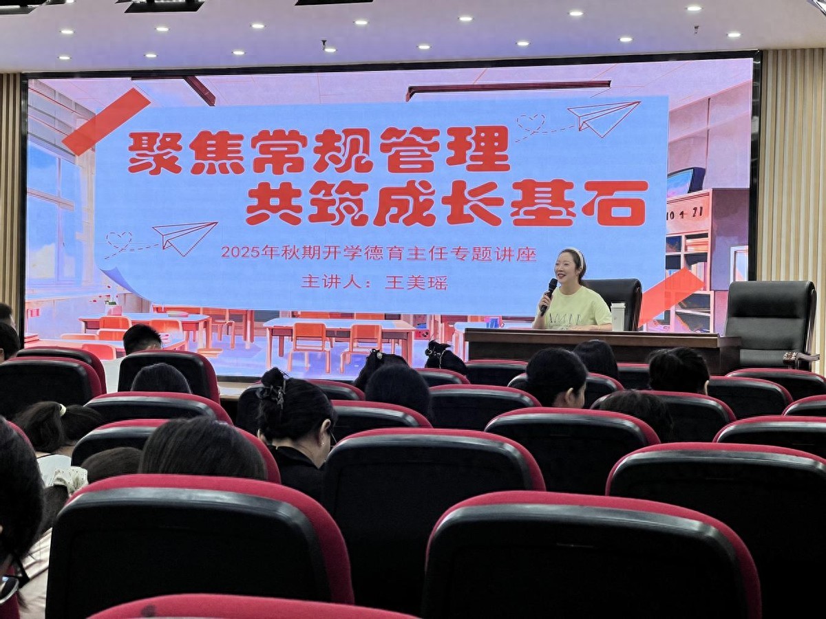 南溪区福临小学校德育主任王美瑶首先围绕“班级常规管理”、“班级文化建设”和“家长会开展”等方面,带来了一场专题讲座。她从学生一日常规入手,梳理了礼仪、卫生、路队、公物爱护等管理要点,尤其强调一年级学生行为习惯培养的重要性。在班级文化建设方面,她鼓励老师们打造“有温度、有特色、有内涵”的教室环境,让墙面会说话、让角落能育人,真正实现环境与教育的融合。