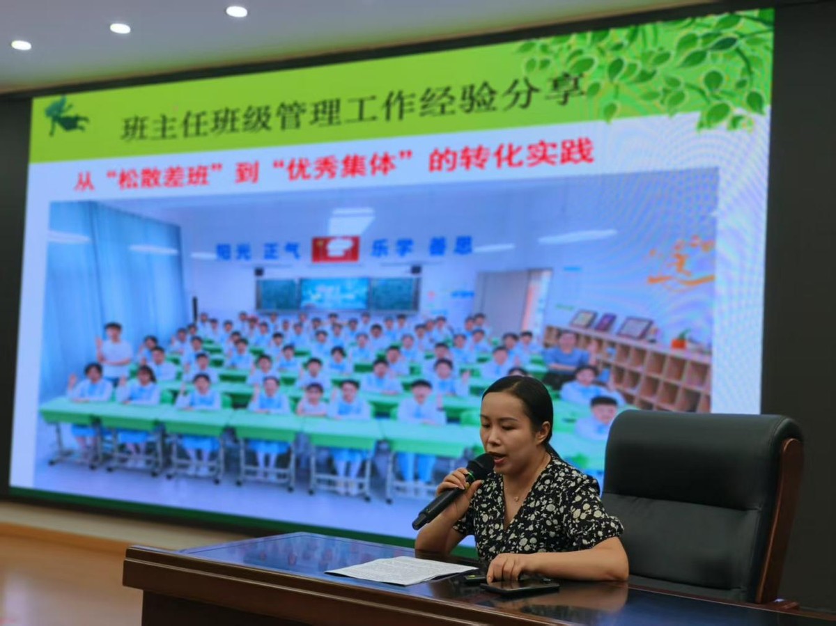 随后,南溪区福临小学校优秀班主任邓丽萍老师分享了如何将“问题班级”转化为“优秀集体”的实战经验。她从课堂纪律、课间安全、小组学习等多个维度,介绍了“学生当老师”、“安全小班长”、“全员职务制”等创新做法,充分展现了一位班主任的智慧、耐心与爱。