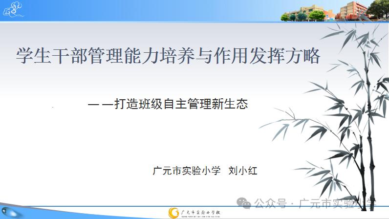 刘小红老师以《学生干部管理能力培养与作用发挥方略》为题开展交流。她从“精准定位与科学选拔”“系统化培养与精细化指导”“有效激励与动态管理”“作用发挥的深度与广度”及“班主任的关键角色与自我修炼”五个方面做了分享,系统而全面地讲述了小学生干部从选人到培养的过程及方法。让班主任们明白学生干部的培养并非额外负担,而是提升班级管理效能、促进学生全面发展、解放班主任精力的战略性投入。