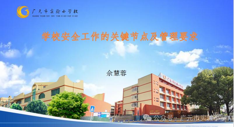 广元市实验小学分管德育安全副校长佘慧蓉带来《学校安全工作的关键节点及管理要求》专题讲座。她强调,安全是学校工作的生命线,安全管理渗透在学校教育的方方面面,是全员、全过程、全方位的工作。随后,她详细拆解了安全工作的关键点位和核心管理要求,包括涉及学生人身安全的晨午检和学生请假管理,涉及群体性安全的大课间活动及大型集会活动管理,涉及特殊学生安全风险的体质心理特异学生管理,涉及学校安全第一道防线的门卫管理,涉及政治安全的意识形态管控,涉及安全事故预防的常态安全教育等。希望各位老师将严格的制度和教育的温度相结合,真正理解、内化并严格执行这些制度,同时,在这些制度的守护下,更加坦然、更加坚定的履行我们作为学生生命健康成长引路人的神圣使命。