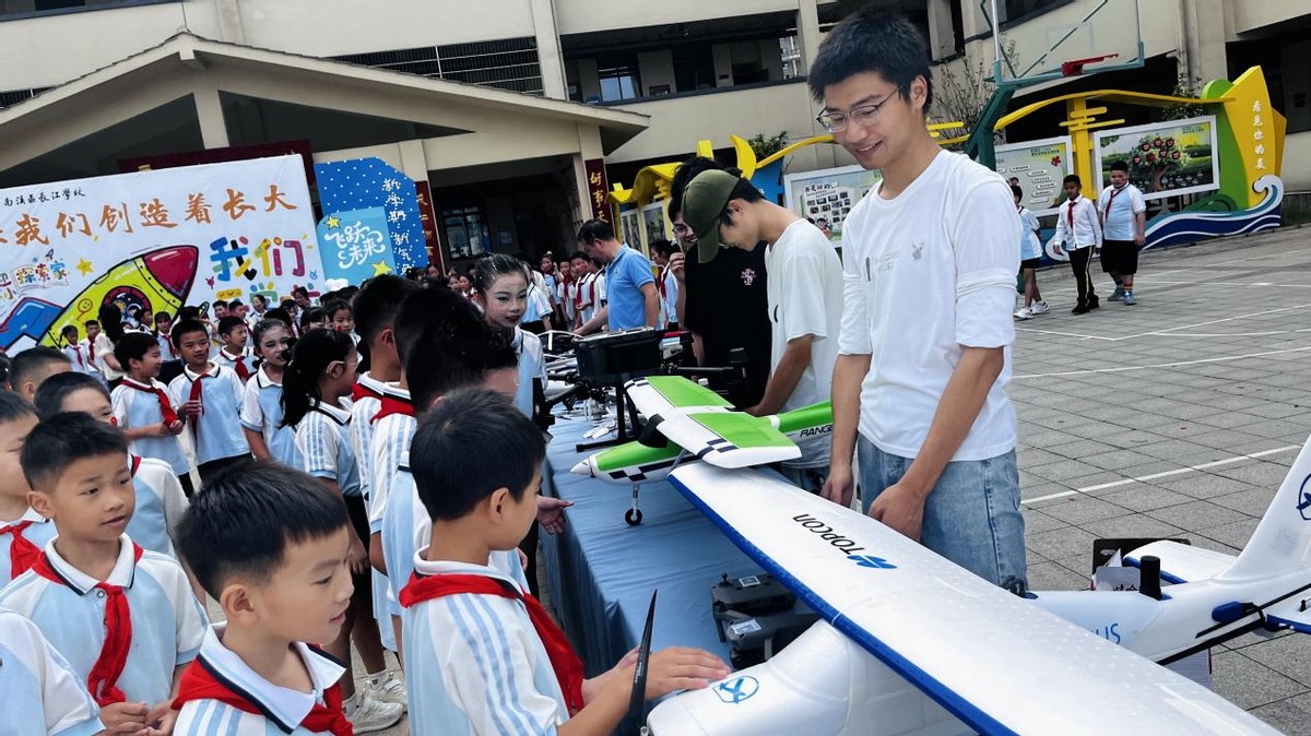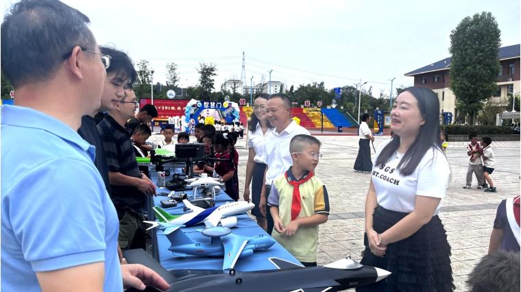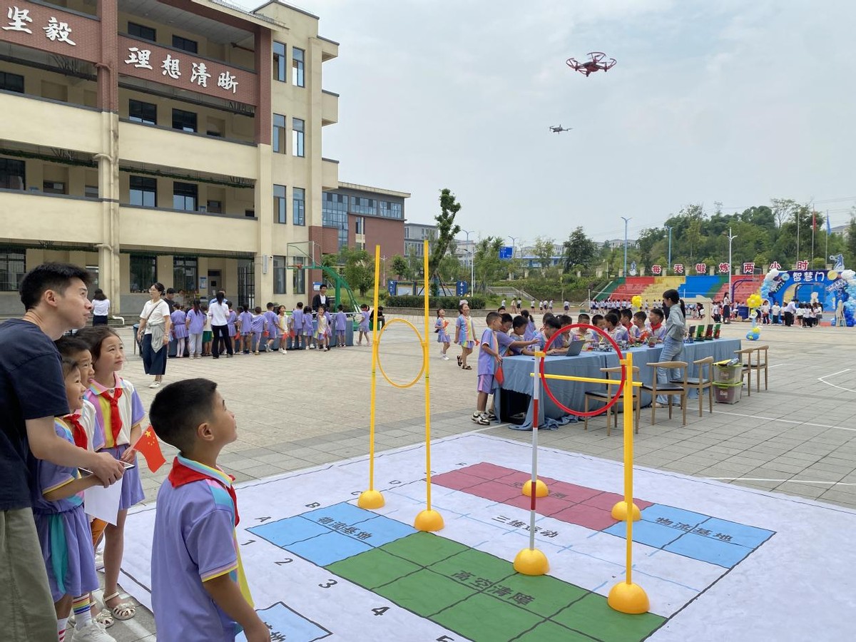 典礼仪式结束后,校园科技打卡活动热烈开展。操场上陈列的多种无人机和乐高作品迅速成为焦点,孩子们簇拥在展区周围,或仔细观察飞行器结构,或赞叹乐高模型的精巧设计,或在老师讲解中了解科学原理。大家在互动体验中感受科技的魅力,激发创造的热情。各班纷纷在校园内合影,记录新起点上的张张笑脸。本次活动中部分科技设备得到了宜宾市南溪区科学技术协会和宜宾市职业技术学院——汽车与轨道交通学院的大力支持,为同学们近距离接触无人机、机器狗等先进科技提供了宝贵机会,在此特别致以诚挚感谢!