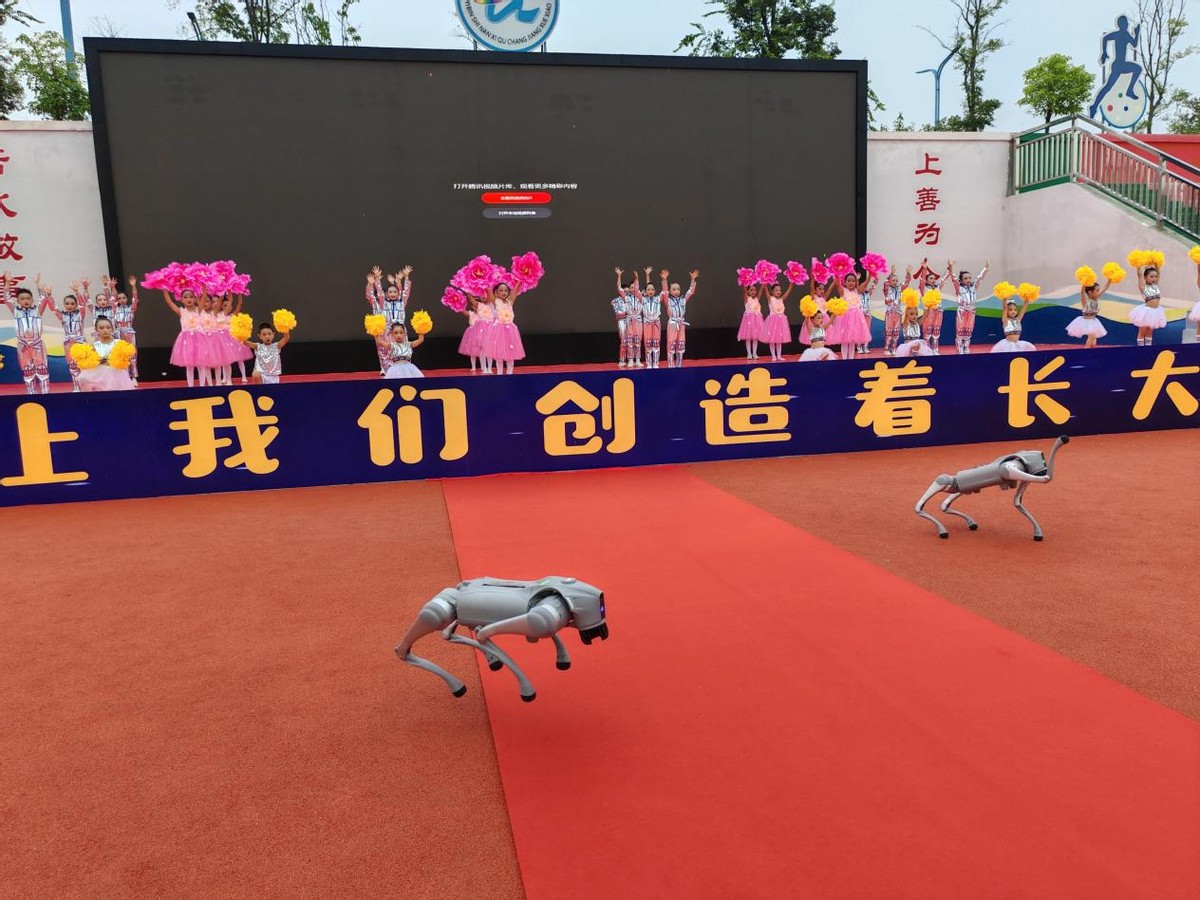 随后,科技主题节目《舞动科技畅未来》精彩上演。整齐划一的动作、充满创意的编排,不仅体现了同学们的艺术素养,更彰显了学校科技教育的丰硕成果。值得一提的是,节目中还融入了智能机器狗互动表演,它们灵活的动作与同学们默契配合,生动展现了科技与艺术融合的创新魅力,将现场气氛推向高潮。