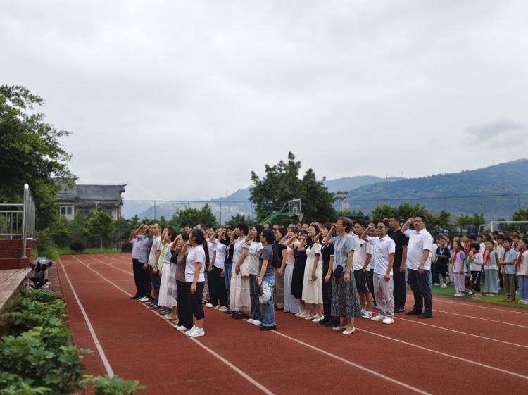 开学典礼在庄严的国歌声中拉开了帷幕。五星红旗冉冉升起,屏山县新安镇九年一贯制学校全体师生肃立行注目礼,高唱国歌。这一刻,爱国情怀在每个人心中激荡,也标志着新学期的征程正式开启。