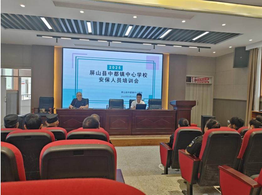 为了增强团队的凝聚力,强化安保人员规范安保工作,进一步提升了全体安保人员的危机意识、安全意识以及严格规范安保工作流程。经屏山县中都镇中心学校行政研究决定,于2025年8月29日在学校四楼会议室召开了安保人员培训会。全镇各小学、幼儿园安保人员准时到会,认真参加培训学习。