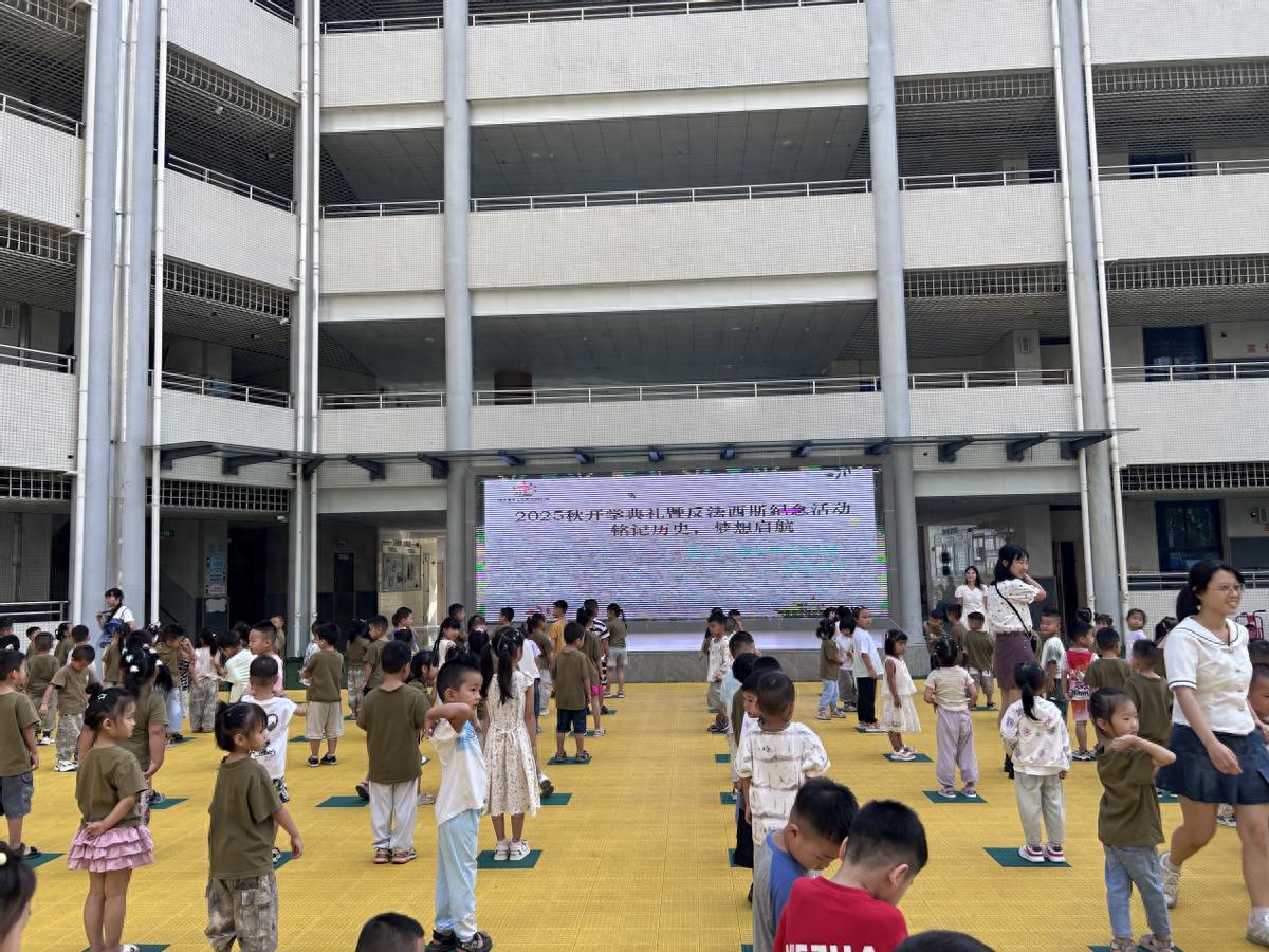 9月1日上午,遂宁市安居区第五幼儿园全体师生齐聚校园,共同迎来了一场意义非凡的开学典礼。本次开学典礼以“铭记历史,梦想启航”为主题,特别融入了中国人民抗日战争暨世界反法西斯战争胜利80周年纪念活动主题,旨在让孩子们在幼小的心灵中播下铭记历史、热爱和平的种子。