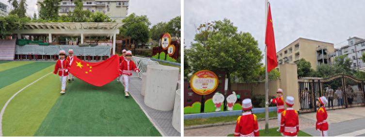 上午9:00,两个园区的操场上庄严肃穆,高县沙河镇幼儿园全体师生整齐列队,期待升旗仪式开始。小旗手们精神抖擞,迈着有力步伐护送国旗走向升旗台。在激昂国歌声中,五星红旗缓缓升起,孩子们仰望着国旗,眼神中满是崇敬与向往,爱国情怀在心中悄然扎根。
