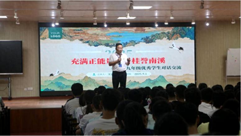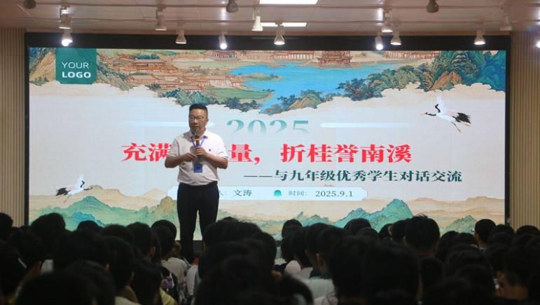 青春逢盛会,奋斗正当时。2025年9月1日,正值新学期启航之际,宜宾市南溪区桂溪初级中学校以“充满正能量,折桂誉南溪”为主题,举办了文涛校长与九年级学生专题交流活动。文涛校长以谆谆教诲为笔,为九年级学子勾勒成长方向,助力他们在中考关键征程上坚定信念、扬帆奋进。