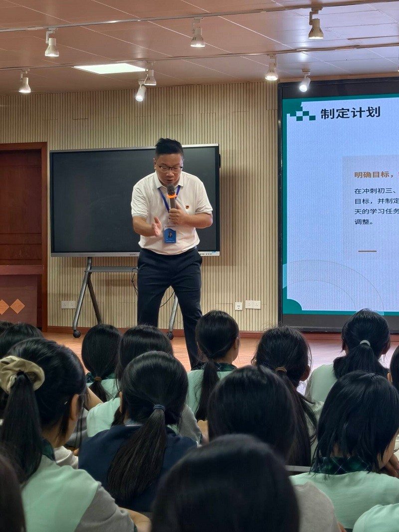 交流中,文涛校长首先围绕“立长远之志、破压力之局”展开。他鼓励学子将个人理想与未来发展深度绑定,以高远目标点燃奋进热情;同时引导大家正视九年级学习压力,用乐观心态和坚韧意志将压力转化为动力,在挑战中锤炼自我。