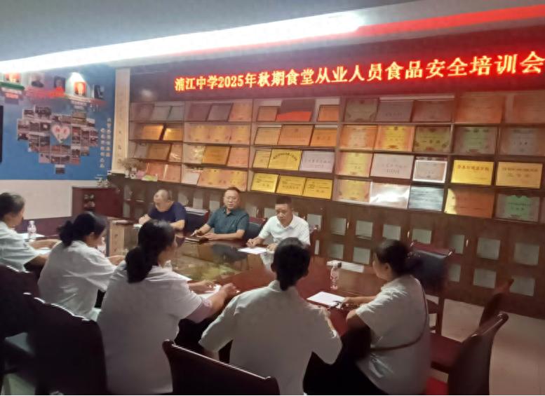 8月31日,为切实保障师生饮食安全,提升食堂服务质量,江安县淯江初级中学校组织召开了2025年秋期食堂从业人员食品安全培训会,学校相关领导及全体食堂从业人员参与会议。