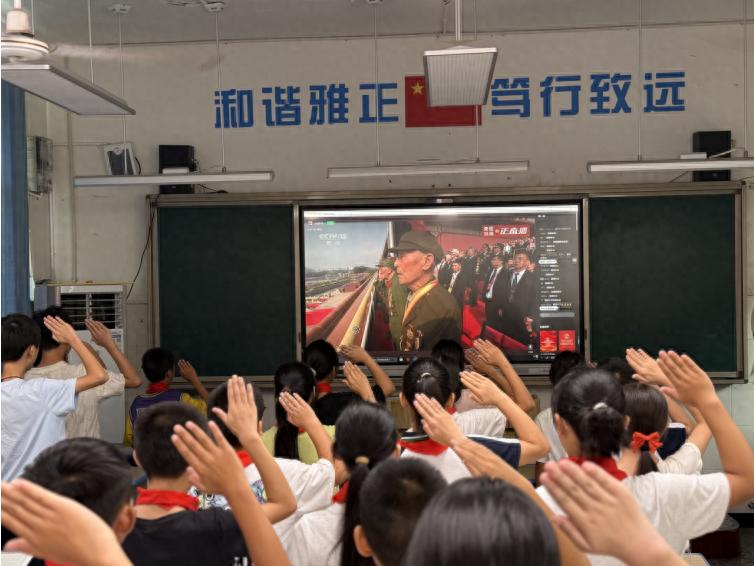 铁流滚滚,气势如虹。9月3日举行的盛大阅兵,不仅是国威军威的集中展示,更是一本“行走的”爱国主义教材,是一堂致敬历史、面向未来的生动国防教育“大思政课”。学生在教室里,坐姿端正,目不转睛地盯着屏幕,被阅兵仪式的庄严氛围所感染。当战旗方队出现时,一面面承载着抗战先烈热血与荣誉的战旗迎风飘扬,仿佛在诉说着那段可歌可泣的抗战岁月。学生们的目光中充满了对先烈的缅怀与敬意。