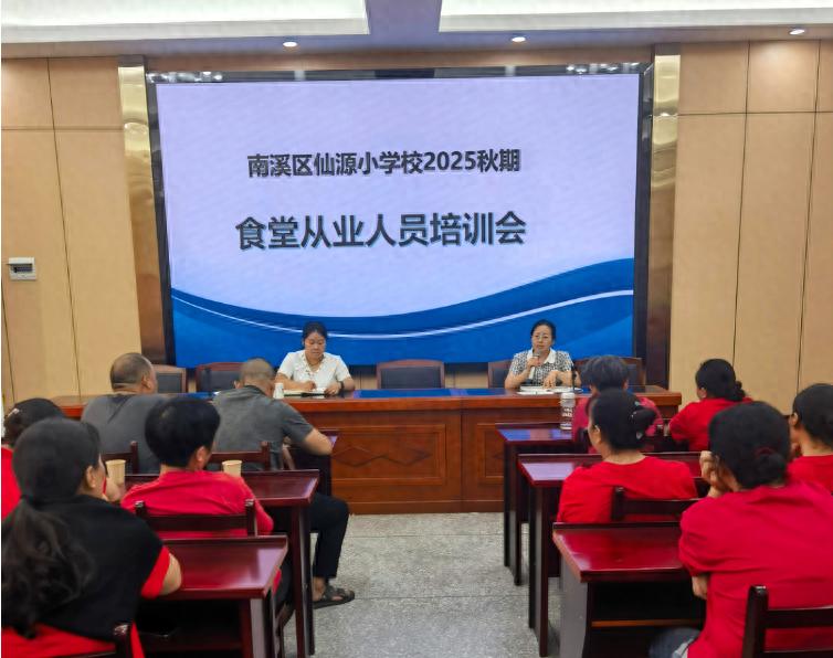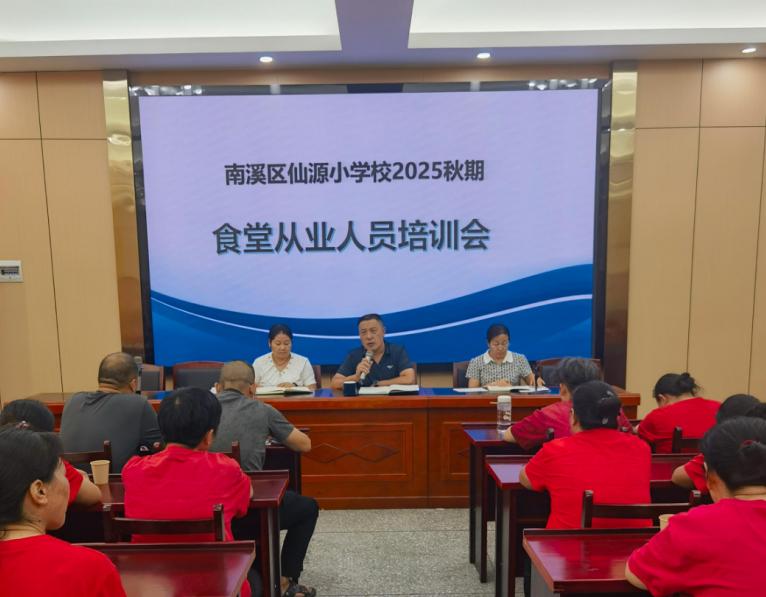 学校食堂食品安全是学生健康发育的“生命线”,更是长期成长的“隐形保障”。为了保障师生的饮食健康安全,2025年9月2日下午,宜宾市南溪区仙源小学校召开了食堂从业人员培训会,学校食品安全管理组所有成员及全体食堂从业人员参加了此次会议。