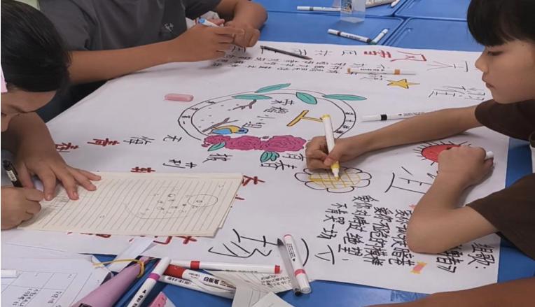上午,小组文化建设率先开展。南溪区桂溪初级中学校同学们围绕组名、组徽、组训展开头脑风暴,在创意碰撞中打造独具特色的小组文化。随后,大家进行小组海报绘画及展示排练,让创意可视化,为后续展示做好准备。