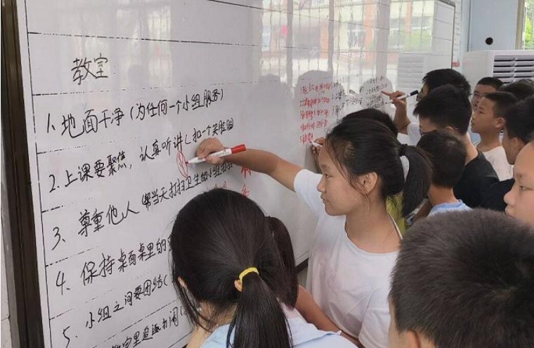 下午,纸质书写实操让同学们在一笔一划中感受汉字魅力,培养严谨认真的书写习惯;板面书写(白板)培训,则让大家掌握了班级文化展示的新技能。南溪区桂溪初级中学校老师还详细讲解请假流程、假条书写规范,从细节处培养规则与责任意识。最后,同学们在复盘总结中成长,在卫生打扫中体会“校园是我家,清洁靠大家”的真谛。