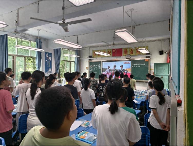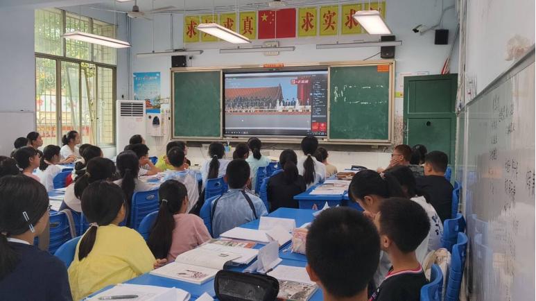 直播过程中,南溪区桂溪初级中学校的学子们个个身姿挺拔,全神贯注,眼神中满是崇敬与激动。当一列列整齐划一的徒步方队迈着坚定有力的步伐,意气风发地走过天安门广场时,那磅礴的气势、飒爽的英姿,瞬间让同学们为之震撼,教室里惊叹声此起彼伏,热烈的掌声经久不息,每一声都饱含着对中国人民解放军的钦佩,对祖国强大的自豪。