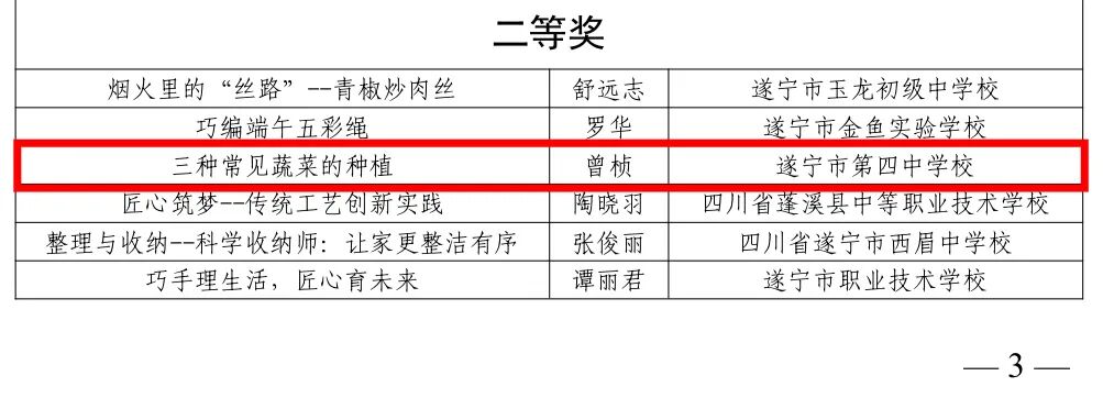 【喜报】遂宁四中教师在全市中小学劳动课教学设计比赛中喜获佳绩
