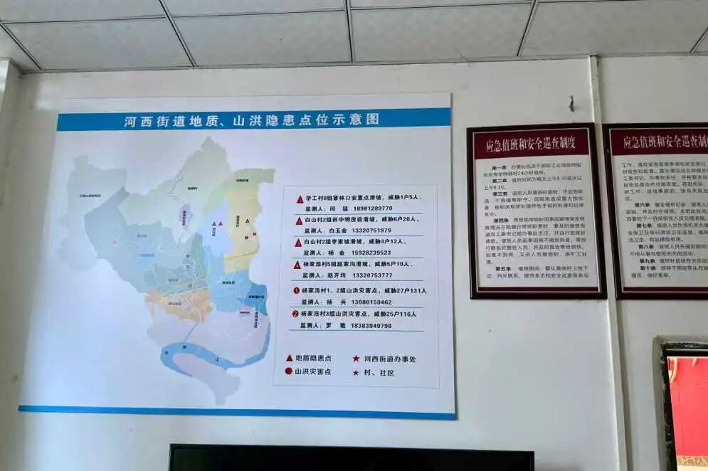 面临严峻防汛形势,街道党工委、办事处第一时间安排部署工作,制定《暴雨期间应急巡查方案》,明确“街道统筹、村社联动、网格覆盖”的三级责任体系。街道主要领导及包村(社区)领导带队深入一线,各村(社区)成立防汛应急小组,24小时值班待命。同时,针对4处地质隐患点及2处山洪灾害点,充分利用物联网传感器实时监测水位、地质灾害点位移等数据,实现“早发现、早预警、早处置”。