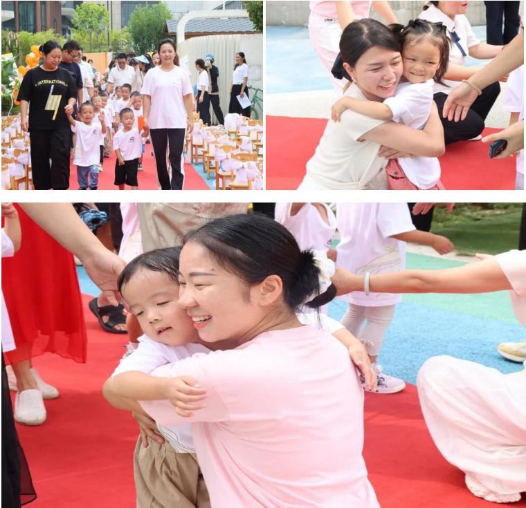 最令人动容的,莫过于“暖心交接”时刻。在轻柔的音乐中,家长牵着孩子走过红毯,与园长、老师温暖相拥。这一刻,是告别,更是成长的启航。
