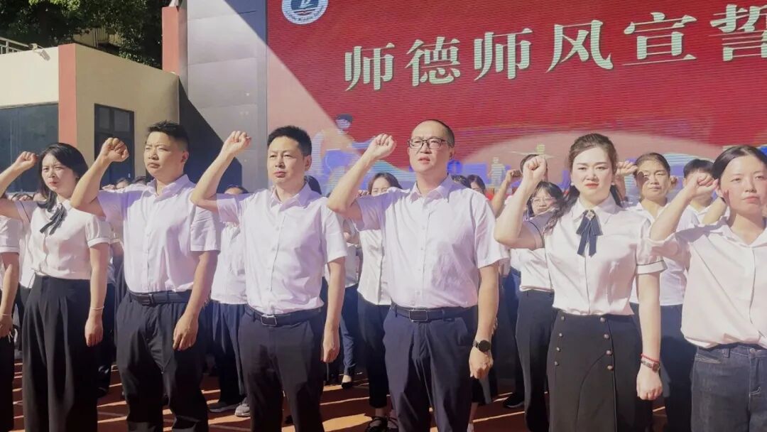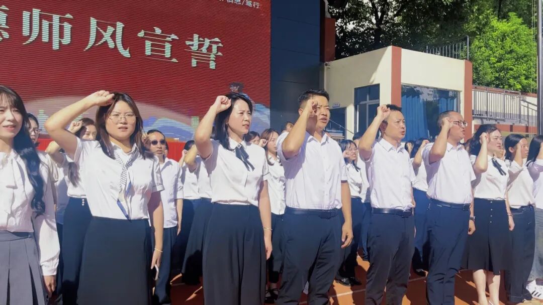 典礼在主持人何成西老师的领誓下,迎来庄重而神圣的时刻——全体教师师德师风宣誓。铿锵有力的誓言,是利中教师对教育事业的忠诚、对育人使命的担当、对高尚师德的坚定守护!