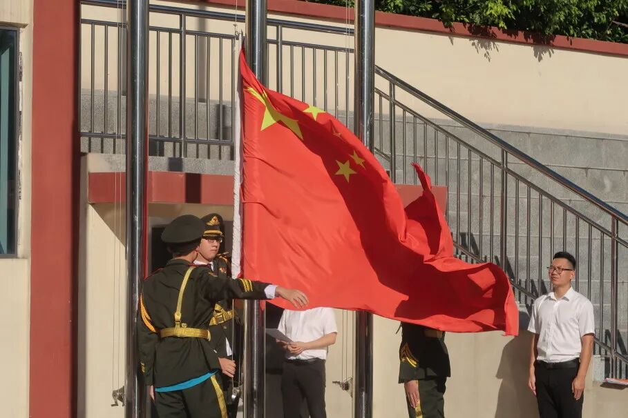 新程伊始国旗扬,新声嘹亮国歌响。全体师生以全新的精神面貌肃立注目,庄严举行升旗仪式,国歌声声,激荡着每个人向前奋进。
