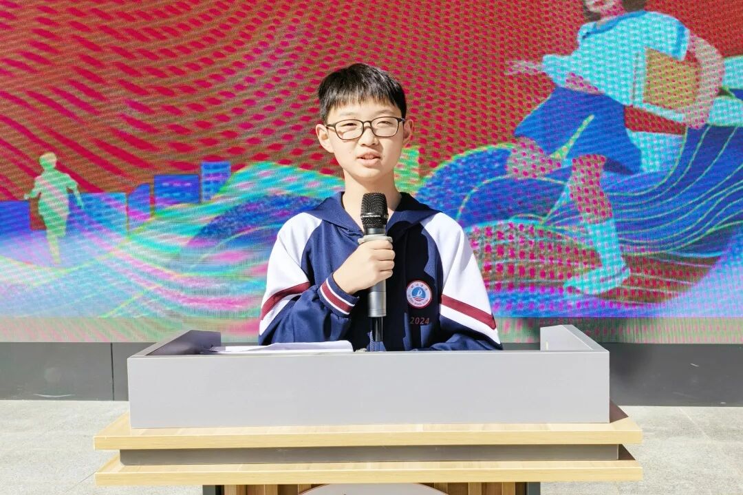 七年级新生代表王宣霖分享他初来利州中学的感受,并号召全体同学在新学期里珍惜时间,勇毅前行,用青春书写无悔篇章。