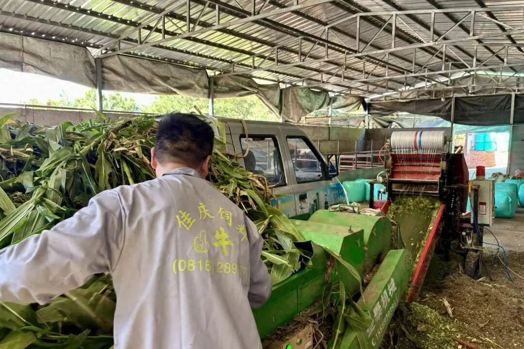 “除了我们白山村,我们还对周边同心村、杨家浩村、龙泉社区等多个村组的秸秆进行上门回收。”养殖场负责人焦伟捋了把沾着草屑的衣袖,指着场院外陆续抵达的运输车介绍:“老百姓早上砍完秸秆,我们便在中午前上门,回收、粉碎、加工、打包、青贮。去年回收半径还局限在3公里,如今通过设立4个临时收储点,最远能覆盖8公里外的种植区。”