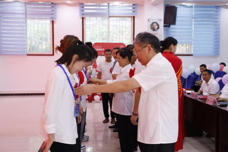 教育的发展离不开园丁的辛勤耕耘。大会现场对荣获2024-2025学年市、区优秀教师、优秀班主任以及教育教学质量奖、叙州区人社局嘉奖等的教师,2024—2025学年32位校级优秀班主任,2024—2025学年3位教坛新秀以及在学校默默奉献满三十年的13位老教师进行表扬,以此感谢他们为学校发展作出的突出贡献。此外,大会还举行了授证仪式,老教师们为7位新入职教师佩戴工作证。这一环节既是无声的鼓励,更是教育家精神的传承,激励新教师早日成长为优秀的人民教师。
