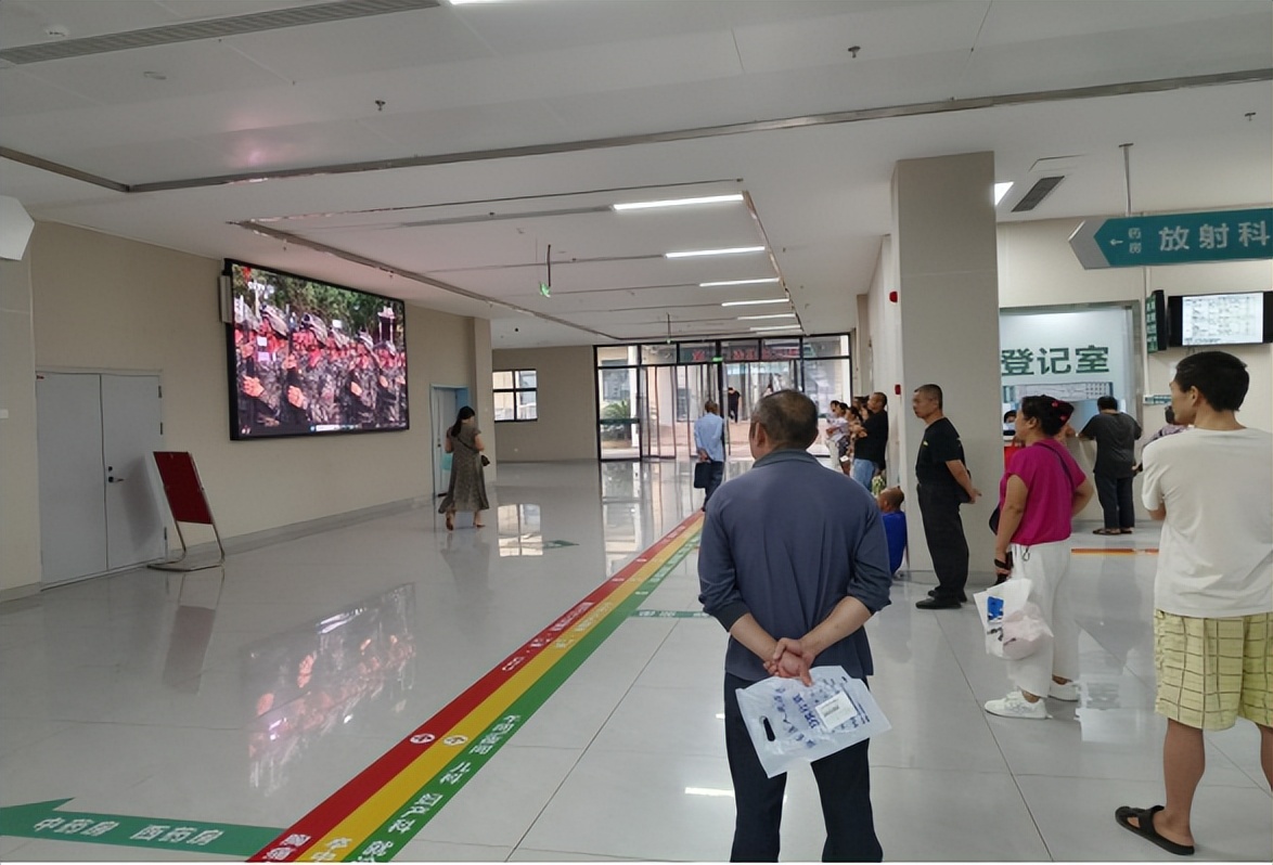 此外,医院还在门诊大厅同步播放阅兵仪式,前来就诊的群众自发收看实况直播。