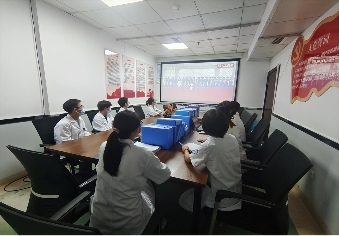当天上午,医院组织全体行政后勤党员干部职工集中观看了在北京天安门广场隆重举行的纪念大会。