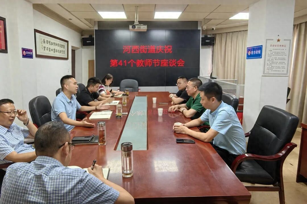 在第41个教师节来临之际,河西街道于9月9日下午组织召开教师节主题座谈会。街道党工委书记陈凤杰主持会议,办事处领导冯剑、杨国平、王聪、樊玉明及辖区2所小学校长、党支部书记参加座谈,共话教育发展大计。