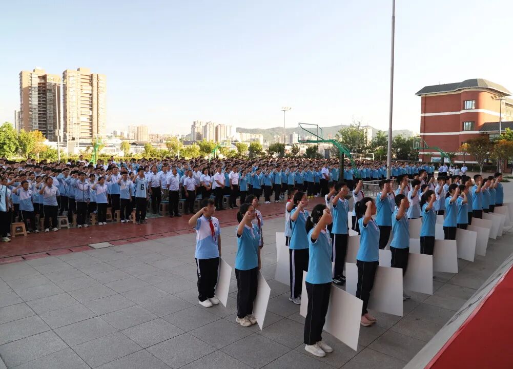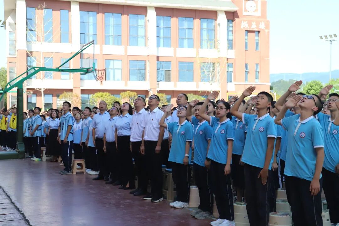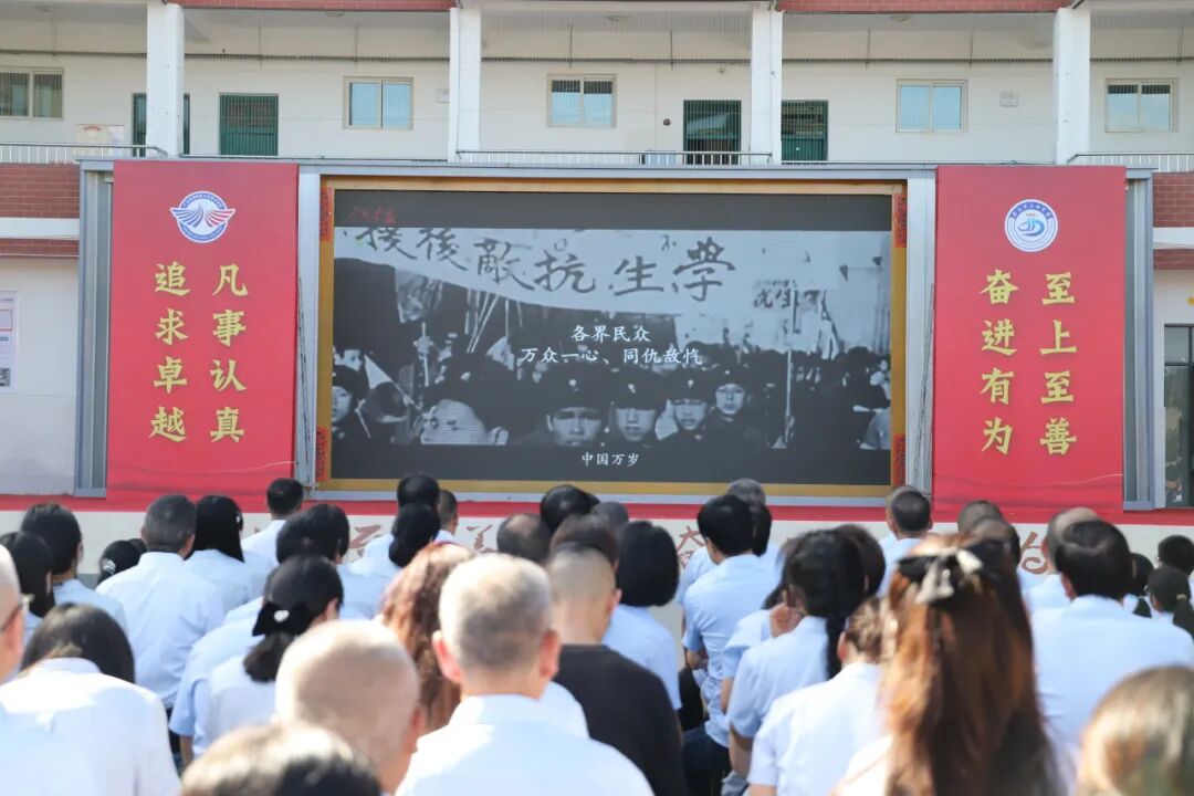 典礼在庄严的升旗仪式中拉开序幕。全体师生整齐肃立,目光紧紧追随着五星红旗。在雄壮嘹亮的国歌声中,五星红旗冉冉升起,迎风飘扬。这一庄严的仪式,不仅是对新学期新征程的崇高致敬,更唤起了大家对那段艰苦卓绝抗战历史的深切缅怀,爱国之情在每个人心中油然而生。