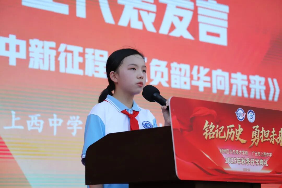 当第一缕金风轻轻抚过校园的绿树,当第一缕桂香悠悠漫过教室的窗台,我们满怀着希望,迎来了崭新的学年与学期。9月8日, 大东英才学校教育集团上西中学校区,隆重举行了以“铭记历史 勇担未来”为主题的2025年秋季学期开学典礼。此次活动承载着两校融合办学的卓越愿景,也为利州教育集团化办学书写着全新篇章。