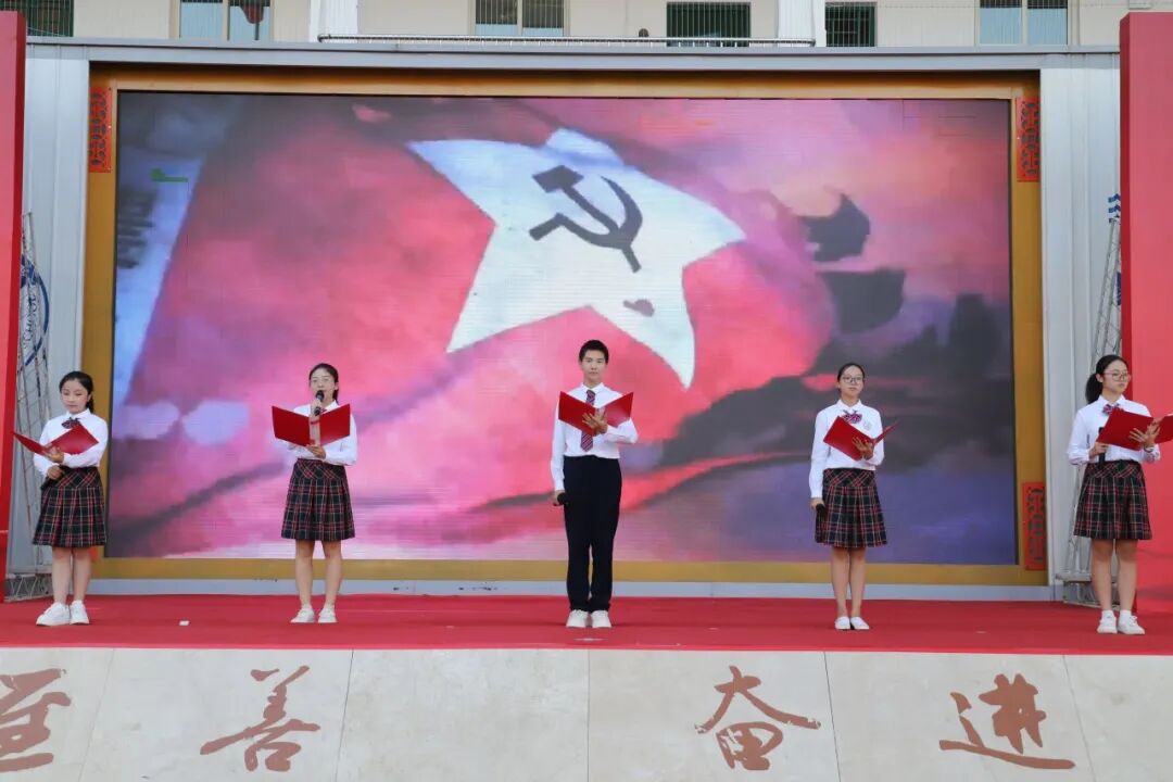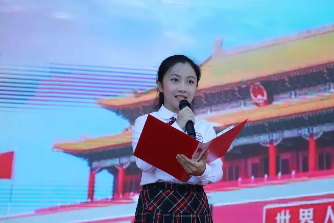 大东英才学校学生深情朗诵《八十年之问:山河作答》,时而激昂高亢,时而深情舒缓,传递着新时代青年传承红色基因的坚定信念。全场师生无不被这份炽热的家国情怀打动。