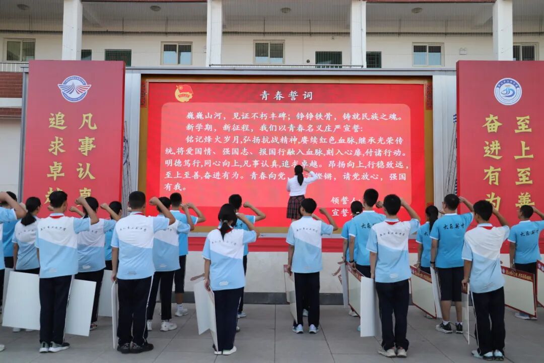 “铭记烽火岁月,弘扬抗战精神......”在领誓人的带领下,全体学生高高举起右拳,庄严宣誓。那铿锵有力、响彻云霄的誓言,充分展现了两校学子矢志奋斗、报效祖国的坚定决心。